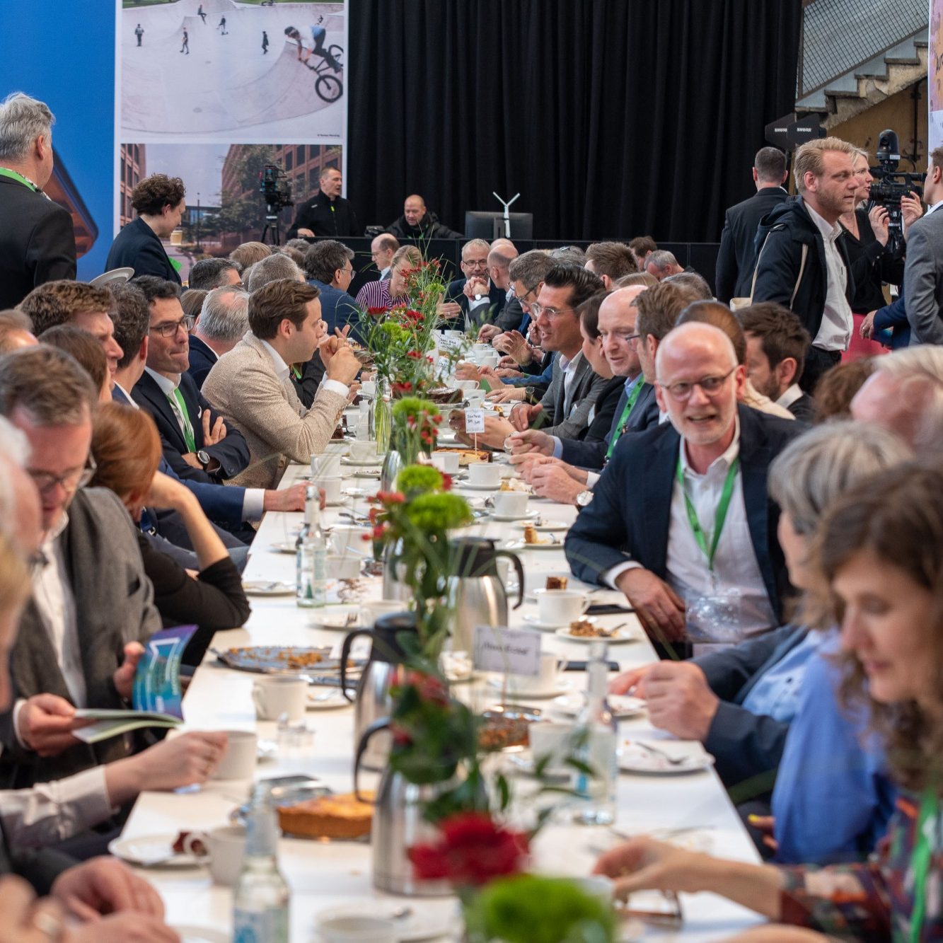 An jedem der beiden Messetage wächst mitten in der Planerlounge für eine Stunde genau dieser Ort: aus der Lounge wird eine gemeinsame Tafel für viele Gäste. Eingeladen von den Standpartner:innen, ohne Sitzordnung, ohne festgelegtes Programm.